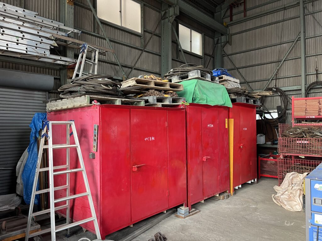 玉掛けスリングの点検後、道具箱の整理を行ったところでお昼ご飯です。